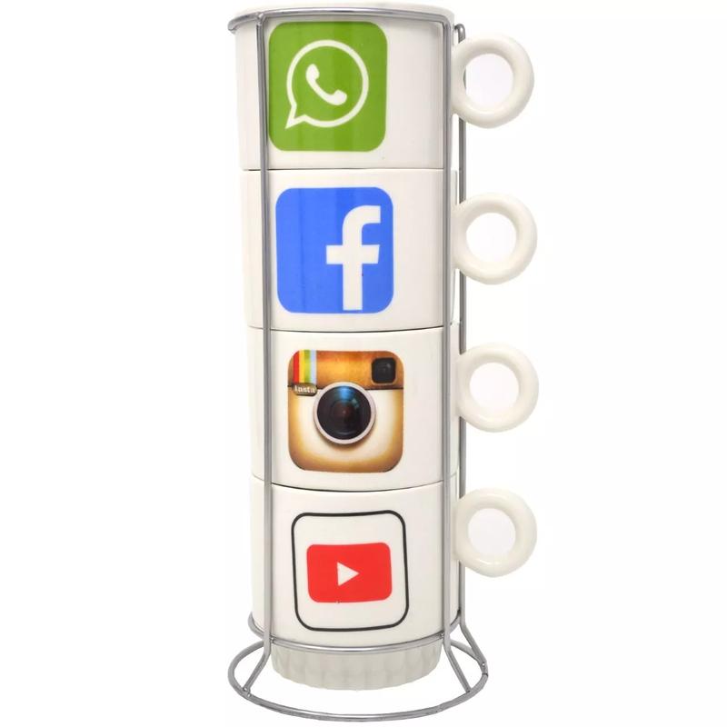 Набор чашек с подставкой "соцсети"