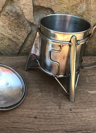 Вот отличный индивидуальный подарок из нержавеющей стали: чашка ручной работы в виде корабля SpaceX под названием Starhopper. Чашка имеет приятную текстуру на трех ножках и станет оригинальным акцентом в любом интерьере. Размеры: - Высота вставки из нержавеющей стали: 10 см - Диаметр вставки из нержавеющей стали: 10 см - Общая высота: 15 см - Общая ширина с ручкой: 20 см - Вес нетто: 0,75 кг Цвет: блестящая нержавеющая сталь. Чашка имеет отдельную крышку, без петель. Это идеальный подарок на день рождения, годовщину свадьбы (11-й стальной юбилей или 6-й железный юбилей), День Святого Валентина, Рождество, помолвку, для жениха и на многие другие особые случаи!