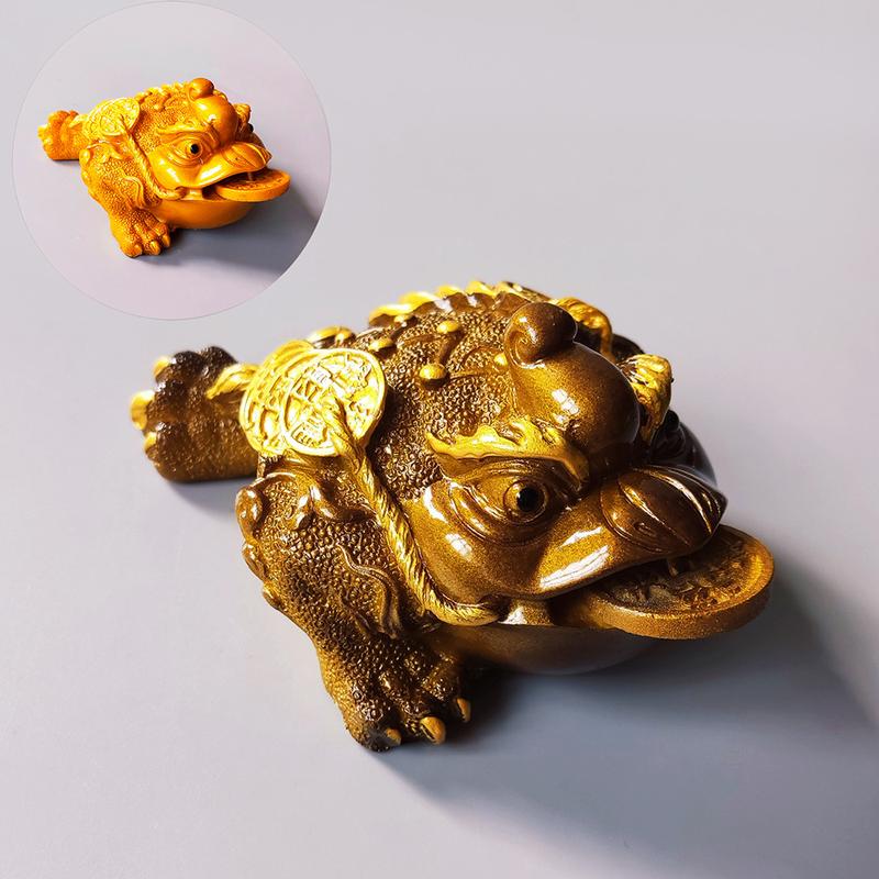 Характеристики: Размер 11 см х 5,5 см Описание: Чашень в китайской чайной культуре - это фигурка, статуэтка, которой украшают чабань или столик во время чаепития. «Чайного бога» принято щедро поливать водой и настоем, тогда он принесет хозяину благополучие, процветание и удачу. Такая фигурка, благодаря своему компактному размеру поместится на любой чайный поднос(чабань), даже самый маленький и своим присутствием наполнит чаепитие позитивным настроением. Небольшой особенностью данной фигурки является способность изменять свой цвет в тот момент, когда горячая вода или настой касаются его поверхности. А монетка в зубах жабы подвижна и шевелится от потока воды.