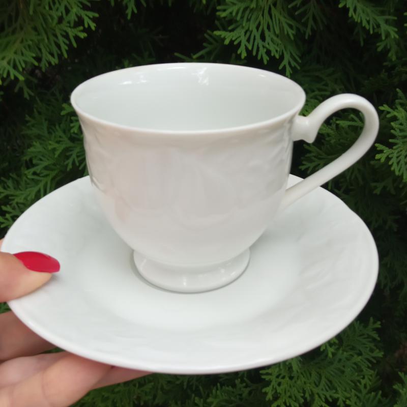 Чашка с блюдцем в паре из японского фарфора на чашке выбиты фрукты.можно на подарок