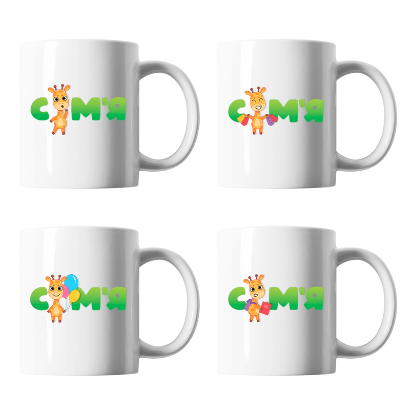 К001731 Білі кружки (чашки) сімейні з оригінальним принтом "Сім"я жирафів. Жирафіки" Push IT Керамічні кухлі family sets. Зовнішнє оздоблення гуртка – білий глянець. Кухоль ідеально підходить для нанесення будь-якого зображення (фотографій, логотипів, картинок, рекламної продукції). А завдяки якісній кераміці отриманий відбиток з часом не тьмяніє, не тріскається та не скаржиться. Готовий кухоль з нанесеним відбитком можна мити як вручну, так і в посудомийних машинах. Так само можна використовувати в мікрохвильовій печі. Матеріал: кераміка класу преміум. Колір білий. Нанесення: сублімаційний друк Об'єм: 330 мл Догляд: можна мити в посудомийних машинах, гріти в мікрохвильовій печі. Малюнок залишиться яскравим навіть після численних циклів миття.