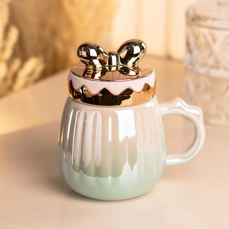 Чашка 500 мл із кришкою "Бант" керамічна. Ця гарна керамічна чашка з незвичайною кришкою однозначно стане вашою улюбленицею! Вона невибаглива в експлуатації, добре зберігає тепло і підійде як для офісу, так і для дому. Основні характеристики чашки Об'єм чашки 500 мл; Висота чашки 14 см; Діаметр чашки 6,3 см. Основні переваги чашки Збереження тепла: кераміка чудово зберігає тепло напою, дозволяючи вам насолоджуватися чаєм або кавою довше. Екологічність: кераміка – це натуральний та безпечний матеріал, що не виділяє шкідливих речовин. Універсальність: керамічні чашки підходять для гарячих та холодних напоїв. Практичність: керамічні чашки легко миються та не вбирають запахи. Довговічність: керамічні чашки при правильному догляді прослужать вам довгі роки.