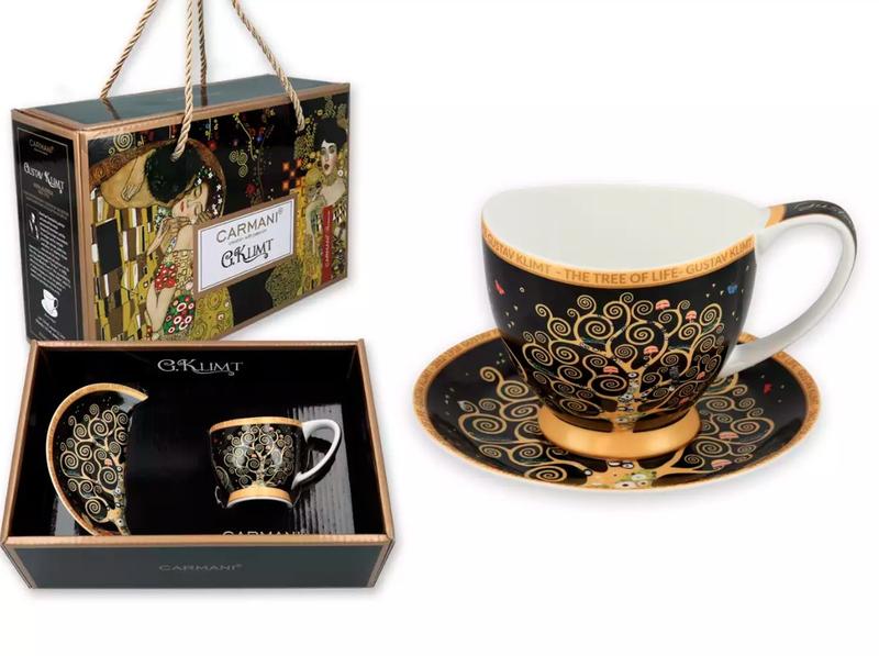 Чашка для эспрессо фарфоровая с блюдцем carmani г. климт «дерево жизни» черный фон, 80 мл...
