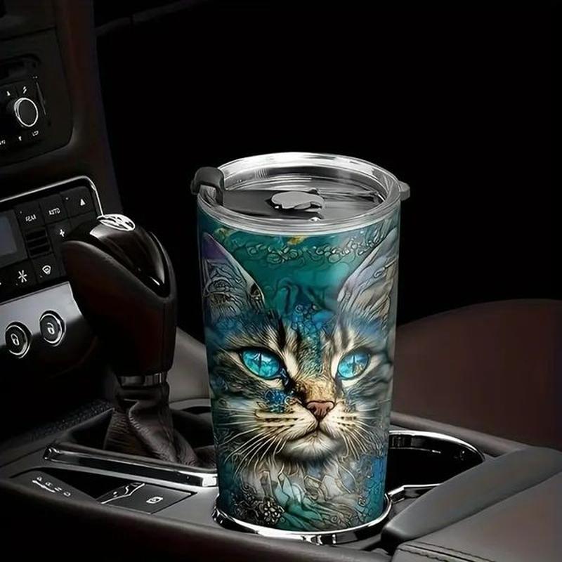 1 шт. 590 мл / Милая кошачья нержавеющая стальная бутылка для воды, портативная водонепроницаемая кружка с соломкой, подходит для использования в помещении, на улице, во время вождения автомобиле Под заказ 10-18 дней