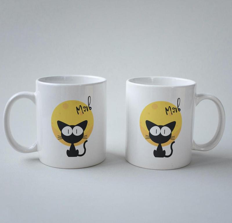 Кружка з принтом "мяв" 330 мл біла