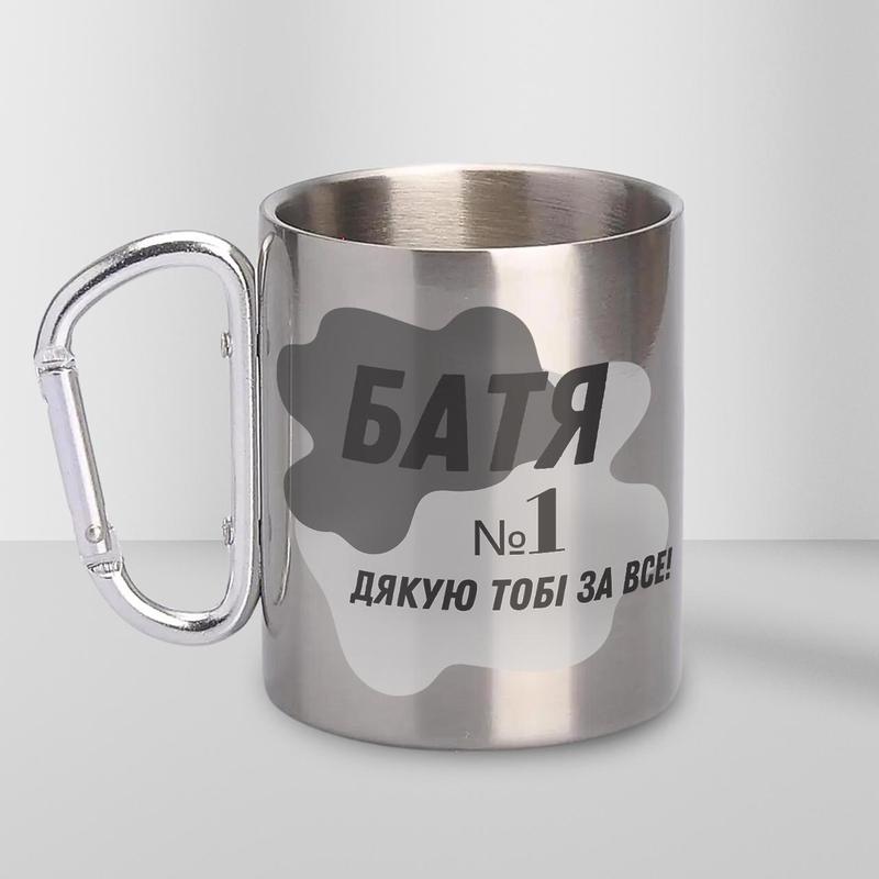 Кружка металева з карабіном "батя №1 дякую тобі за все" 300 мл срібляста