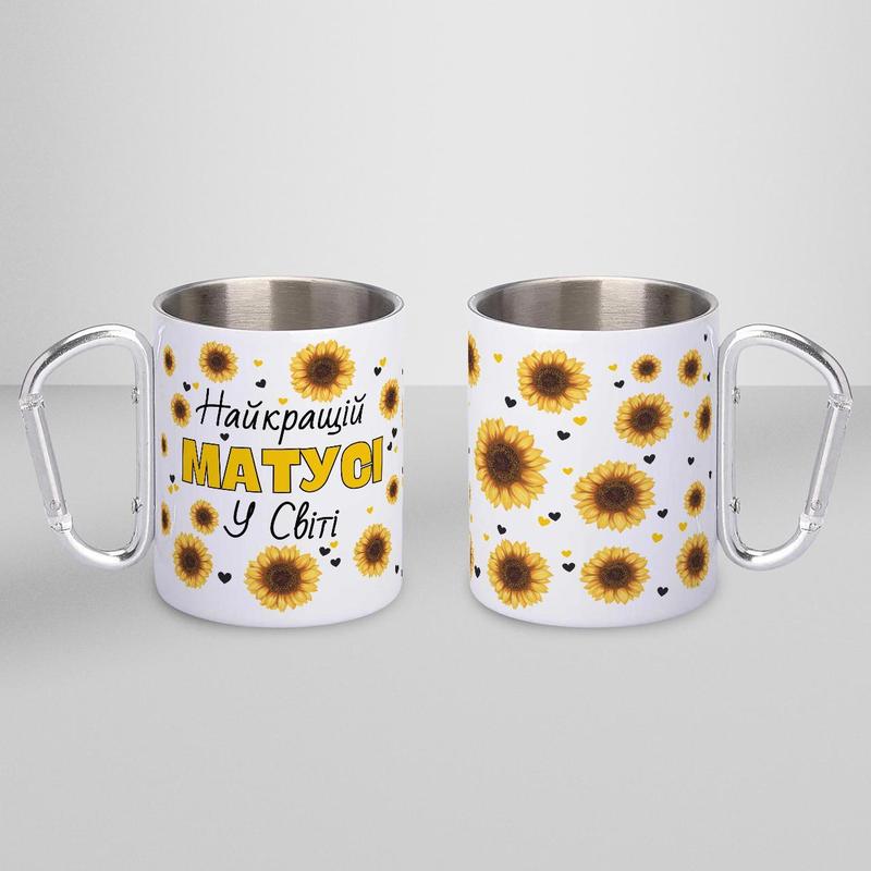 Кружка металева з карабіном "найкращій матусі у світі" 300 мл біла