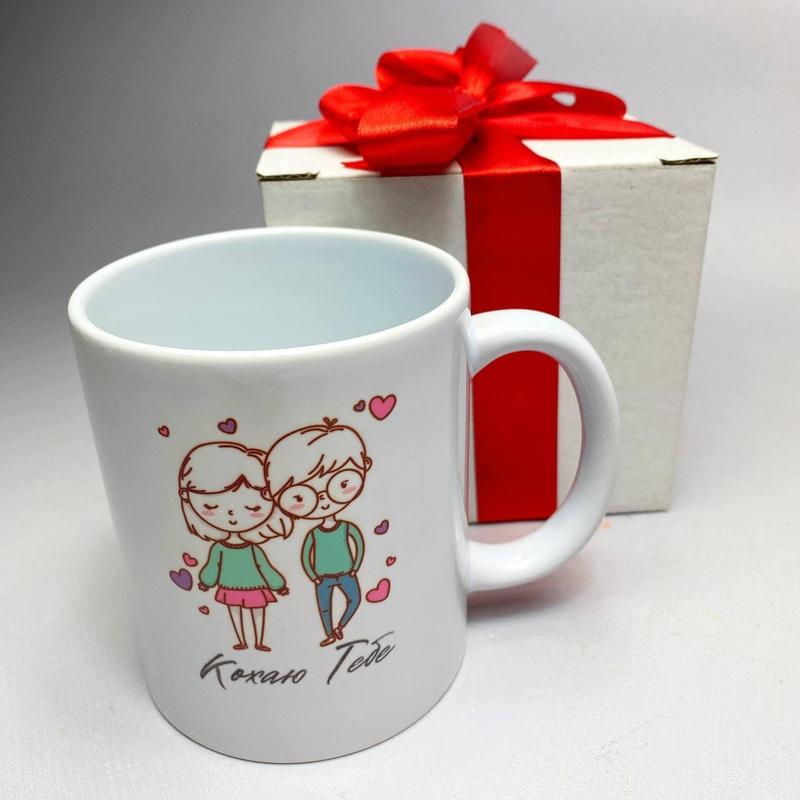 Кружка керамічна з принтом "кохаю тебе" 330 мл у подарунковій коробці з бантом