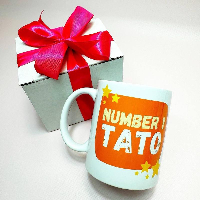 Кружка керамічна з принтом "namber 1 тато" 330 мл у подарунковій коробці з бантом