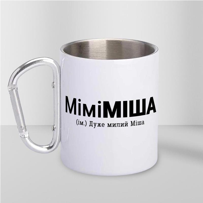 Кружка металева з карабіном "мімімішка" 300 мл біла