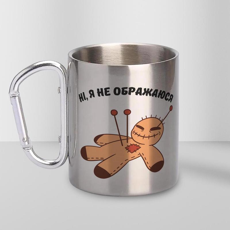 Кружка металева з карабіном "я не ображаюся" 300 мл срібляста