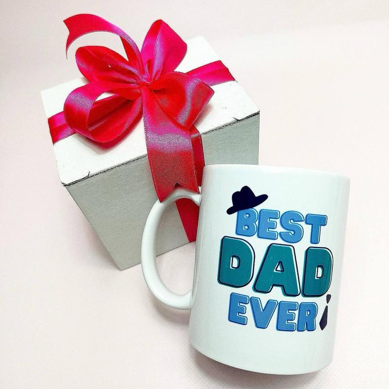 Кружка керамічна з принтом "best dad ever" 330 мл у подарунковій коробці з бантом