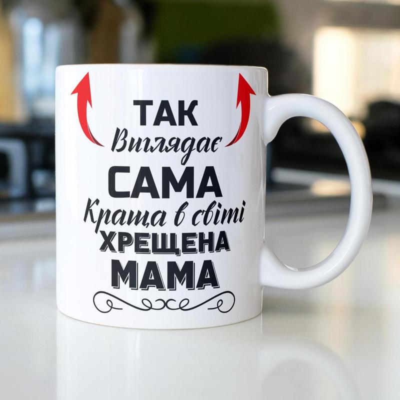Кружка керамічна з принтом "так виглядає сама краща в світі хрещена мама" 330 мл біла