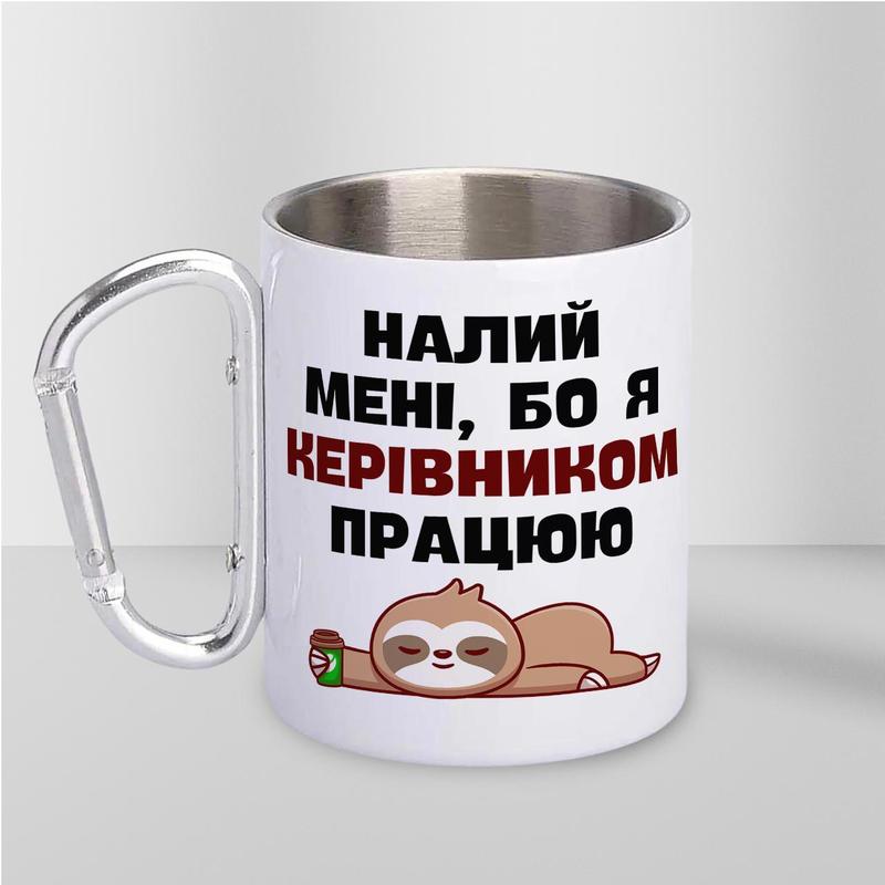 Кружка металева з карабіном "налий мені бо я керівником працюю" 300 мл біла