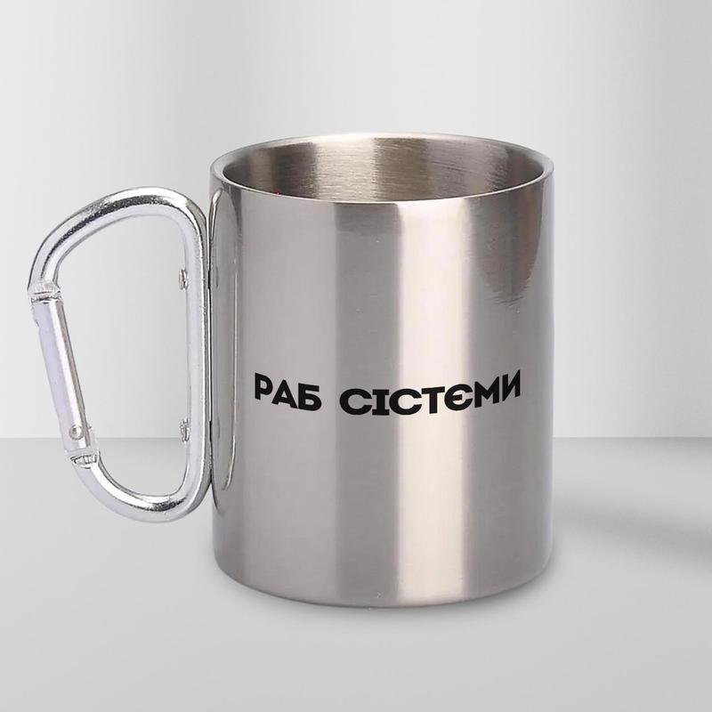 Кружка металева з карабіном "раб сістєми" 300 мл срібляста |швидка доставка|