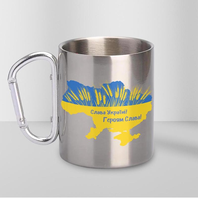 Кружка металева з карабіном "слава україні" 300 мл срібляста |швидка доставка|