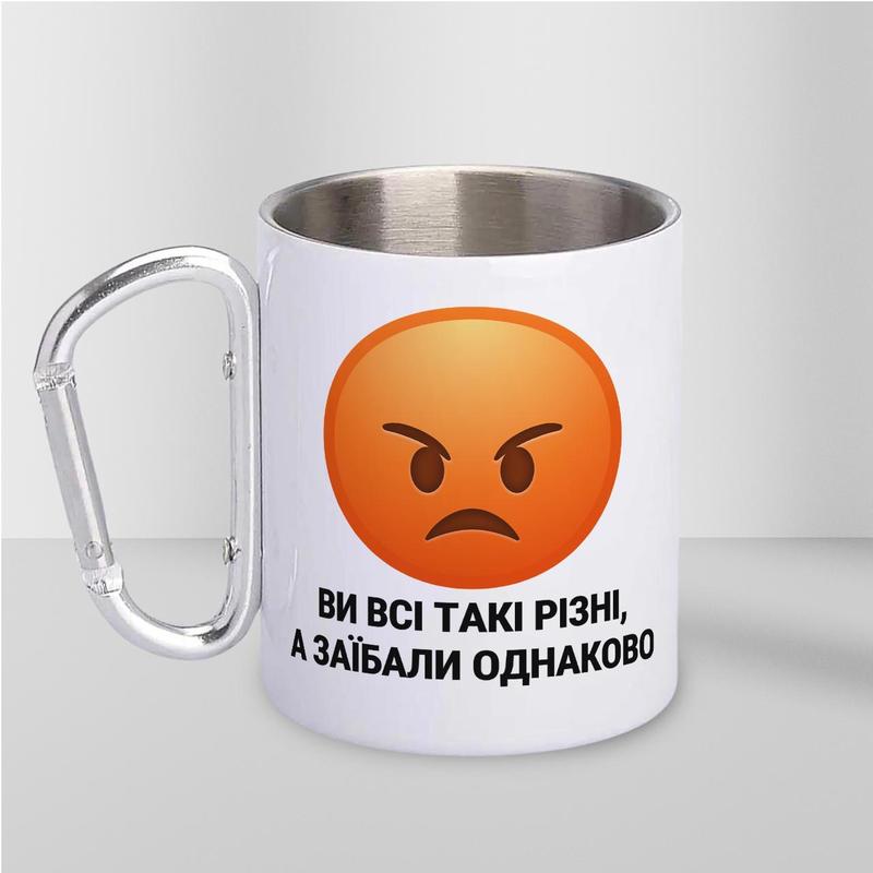 Кружка металева з карабіном "ви всі такі різні а заїбали однаково" 300 мл біла |швидка до...