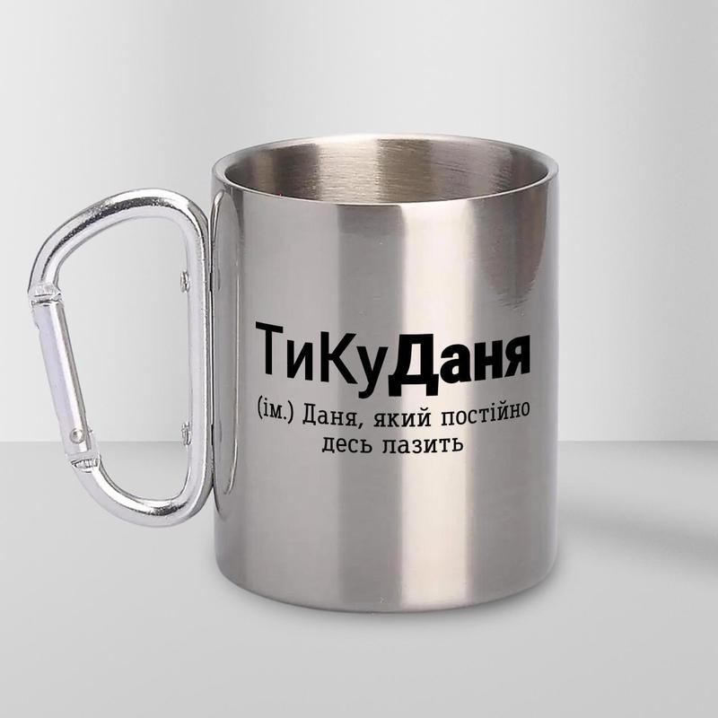 Кружка металева з карабіном "тикуданя" 300 мл срібляста |швидка доставка|