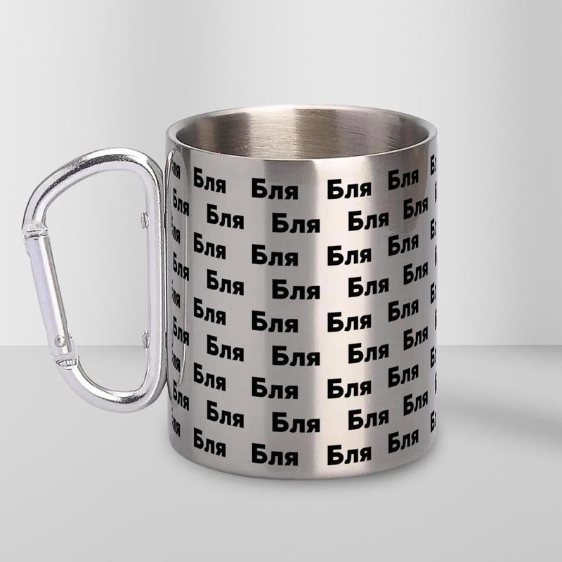 Кружка металева з карабіном "бля" 300 мл срібляста |швидка доставка|