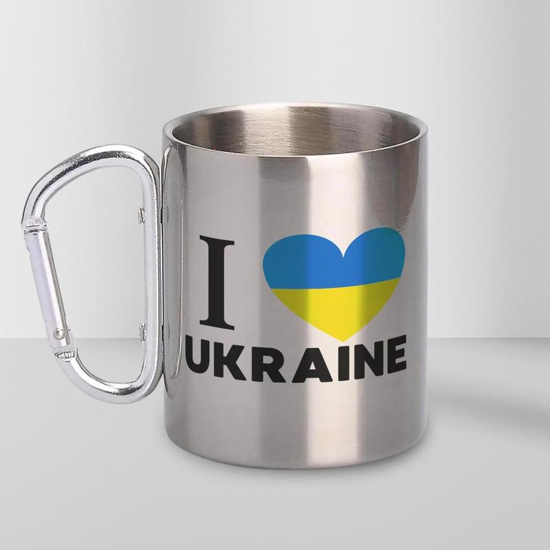 Кружка металева з карабіном "i love ukraine" 300 мл срібляста |швидка доставка|