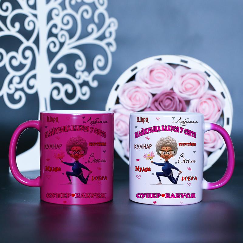 Чашка хамелеон "у всех бабушка, как бабушка, а у меня супер бабушка"