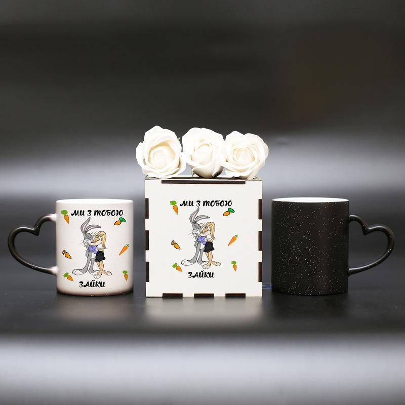 Чашка хамелеон " ми з тобою зайки " с принтом