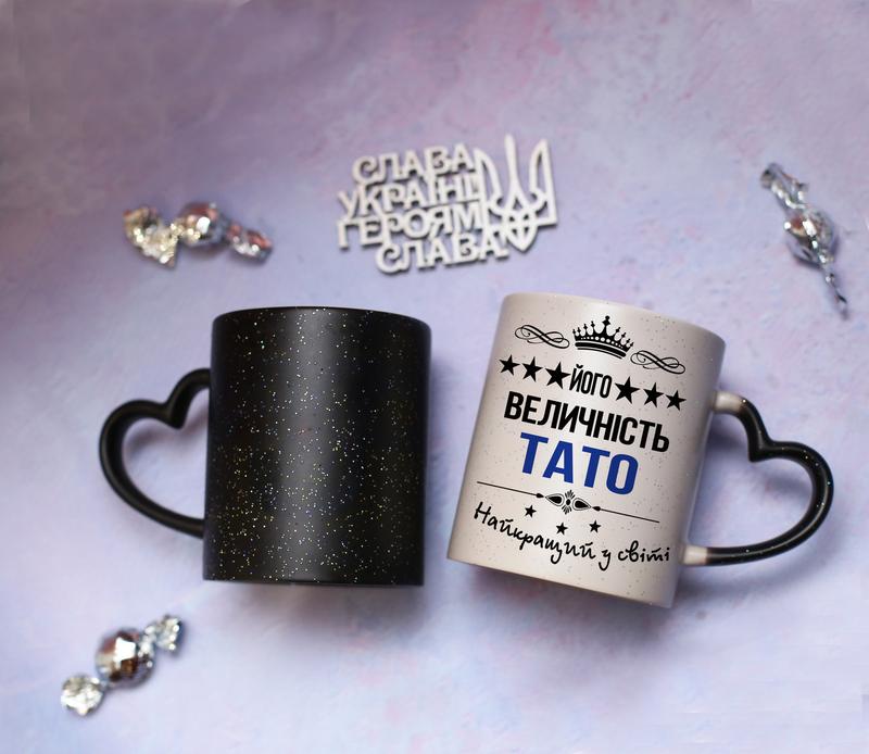 Чашка хамелеон черная "Его величество папа. Лучший в мире" для папы Чашка Хамелеон станет отличным подарком, от которого все точно будут в восторге. Бюджетная цена, индивидуальное оформление, быстрое изготовление. Воплотим все Ваши фантазии: можно добавить фото и изменить текст. Дополнительно можно заказать подарочную упаковку. - Цена чашки: 325 грн - Изготовление - 2-4 дня - Доставка Новой Почтой Качество чашки PREMIUM: - Объем: 330 мл - Высота: 95 мм - Диаметр: 82 мм - Вес: 350 гр - Нанесение изображения: сублимационное - Материал: керамика