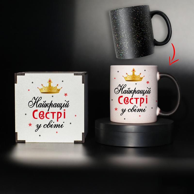Чашка хамелеон "лучшей сестре в мире" с принтом