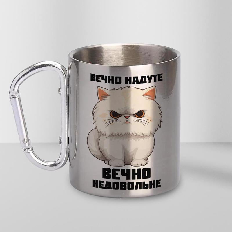 Кружка металева з карабіном "вєчно недовольне" 300 мл срібляста