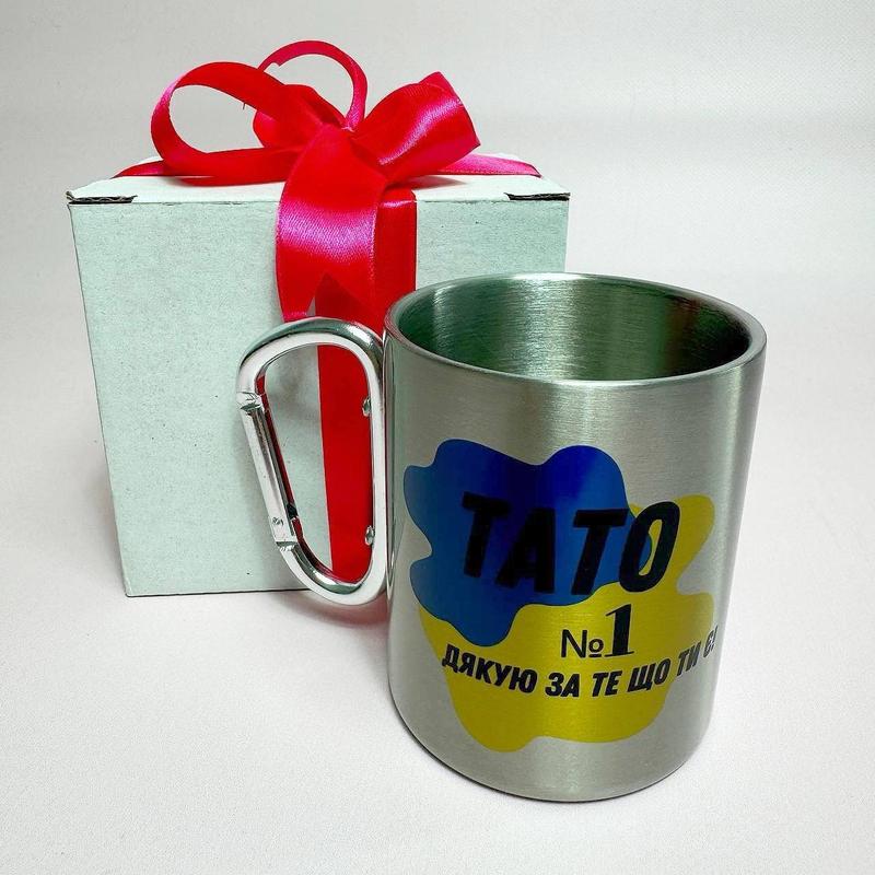 Кружка металева з карабіном "тато №1 дякую за те що ти є" 300 мл у подарунковій коробці з...