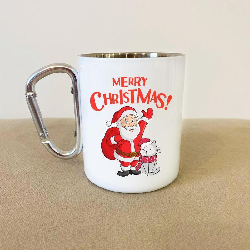 Кружка металева з карабіном "merry christmas" 300 мл біла