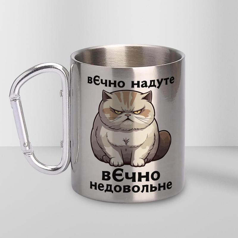 Кружка металева з карабіном "вєчно недовольне" 300 мл срібляста
