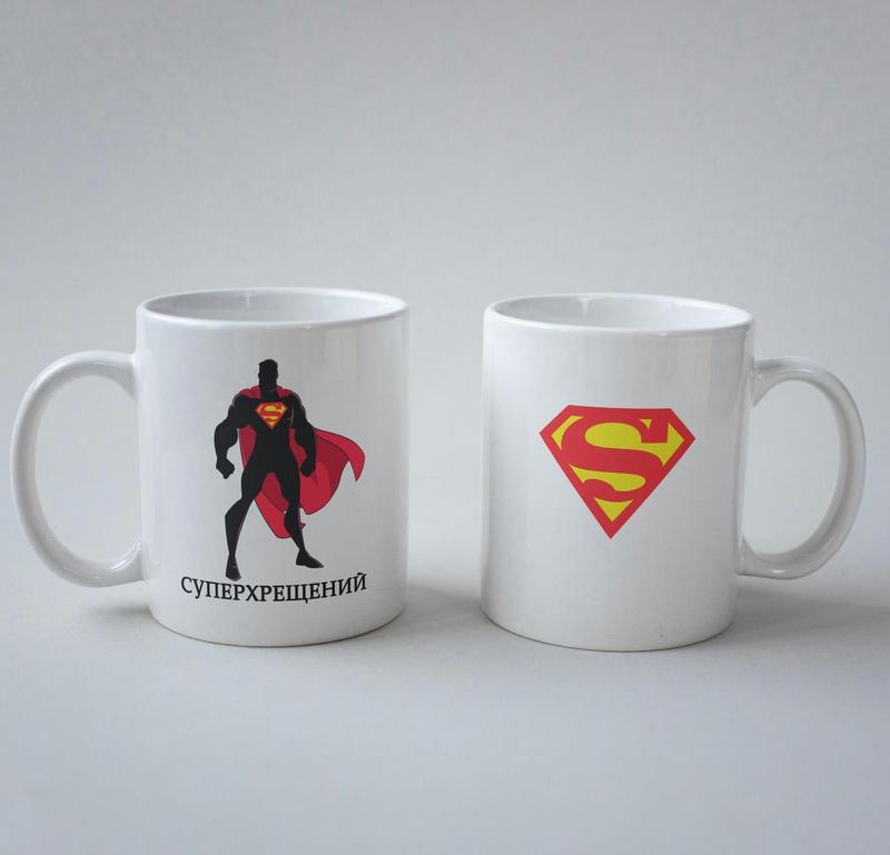 Кружка керамічна з принтом "суперхрещений" 330 мл біла