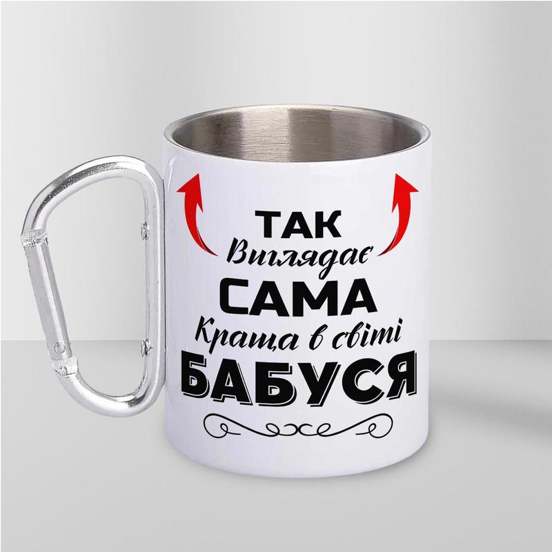 Кружка металева з карабіном "так виглядає сама краща бабуся" 300 мл біла