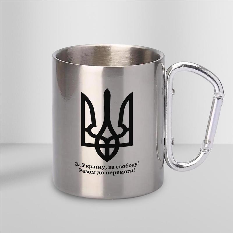 Кружка металева з карабіном "за україну" 300 мл срібляста