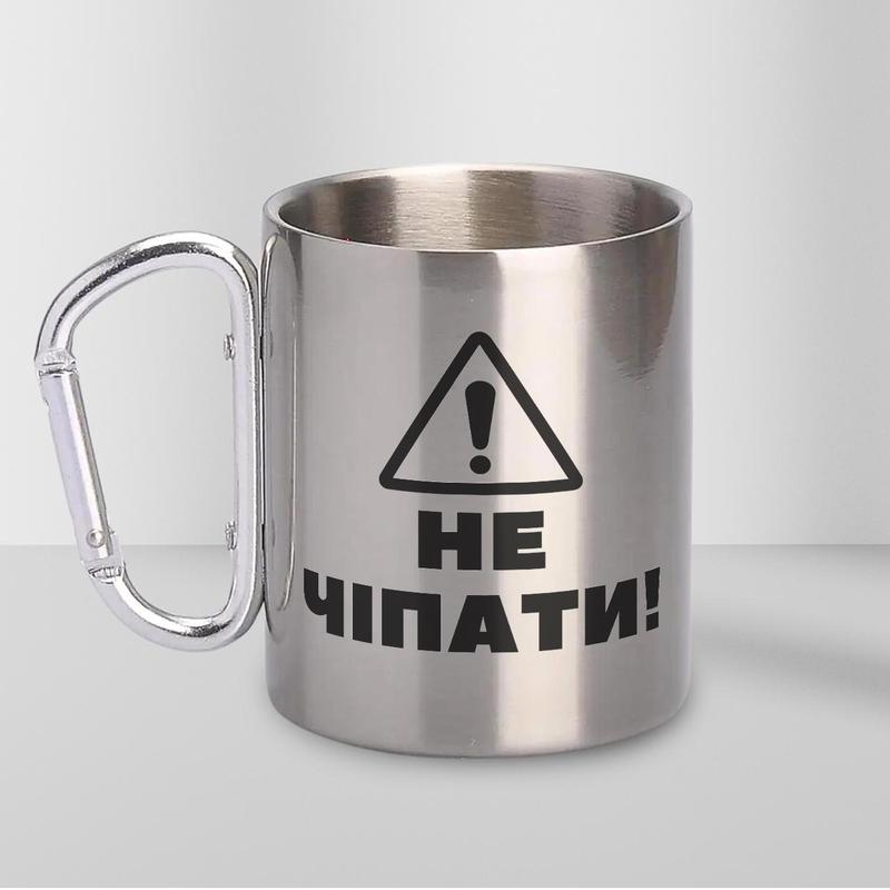 Кружка металева з карабіном "не чіпати" 300 мл срібляста
