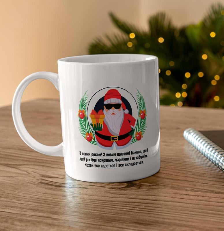 Кружка з принтом "дід мороз подарунок" 330 мл біла