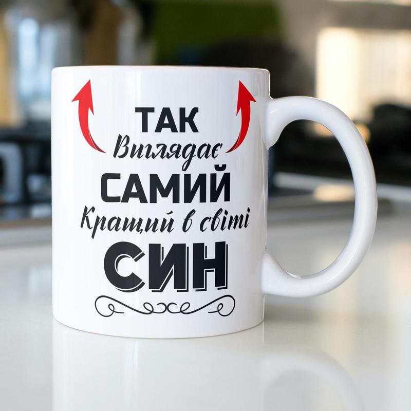Кружка керамічна з принтом "так виглядає самий кращий в світі син" 330 мл біла