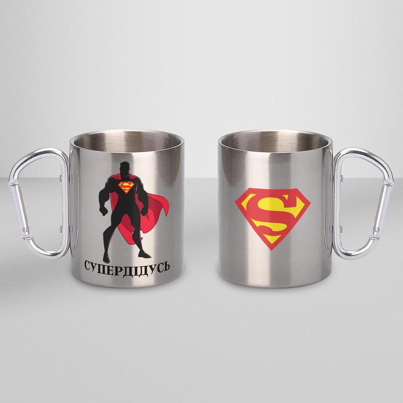 Кружка металева з карабіном "супердідусь" 300 мл срібляста