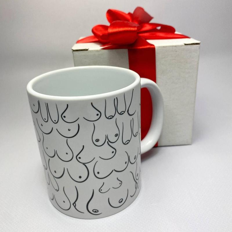 Кружка керамічна з принтом "цицьки" 330 мл у подарунковій коробці з бантом