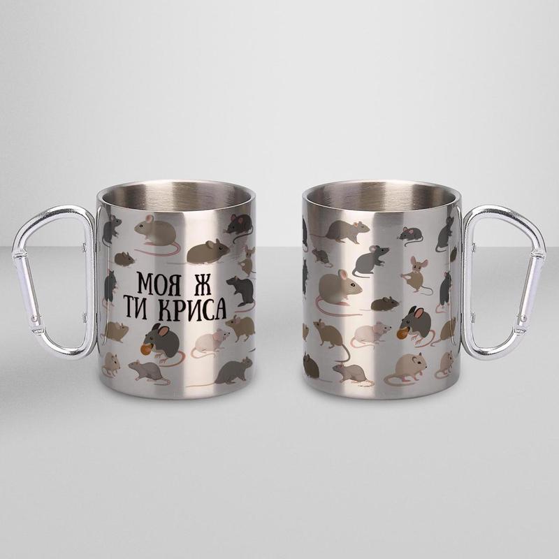 Кружка металева з карабіном "моя ж ти криса" 300 мл срібляста