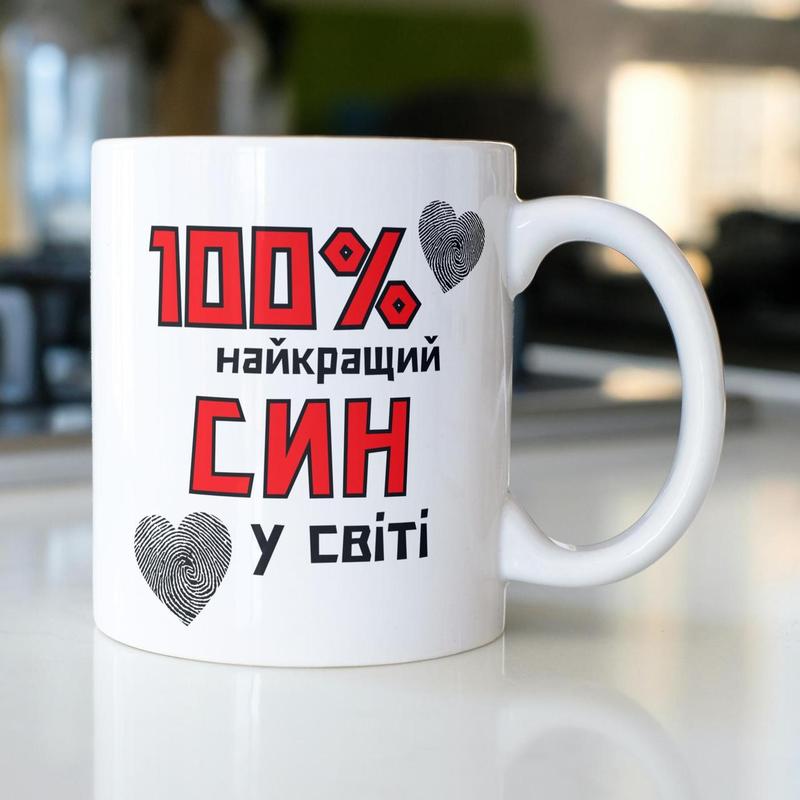 Кружка керамічна з принтом "100% найкращий син" 330 мл біла