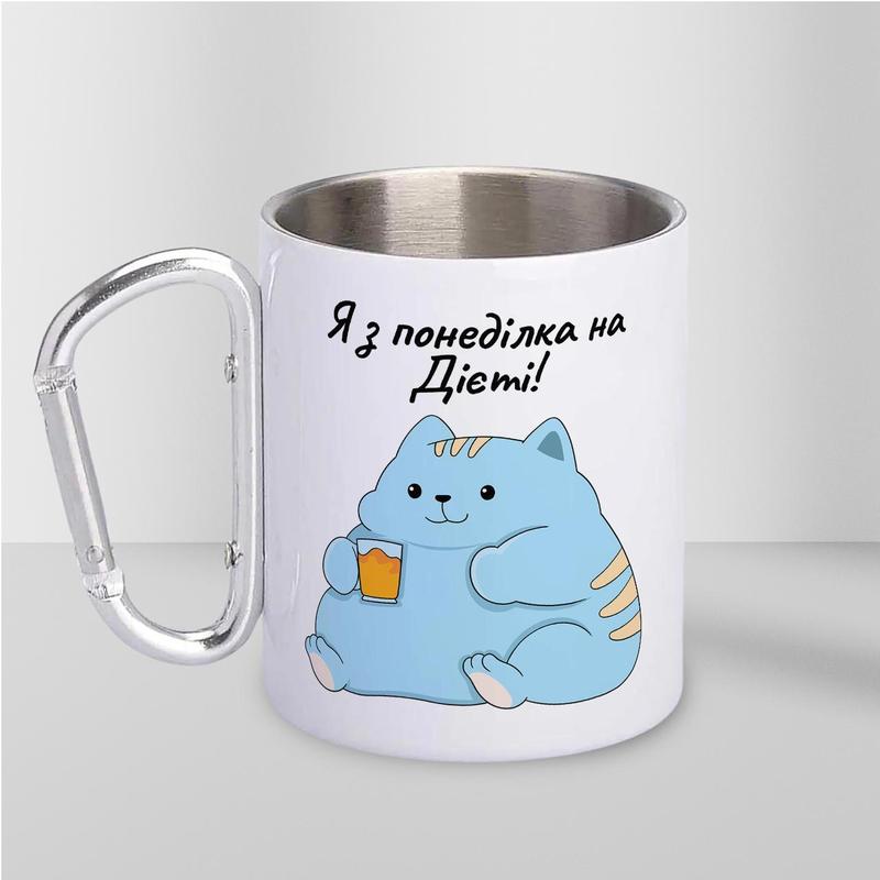 Кружка металева з карабіном "з понеділка на дієті" 300 мл біла