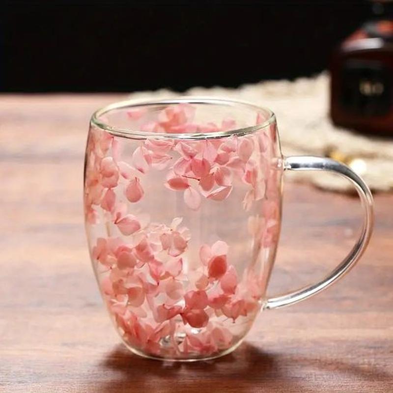 Стакан двойного слоя из высококачественного боросиликатного стекла, изысканный цветочный стакан для использования в доме и в ресторане. 350мл Под заказ 10-18 дней