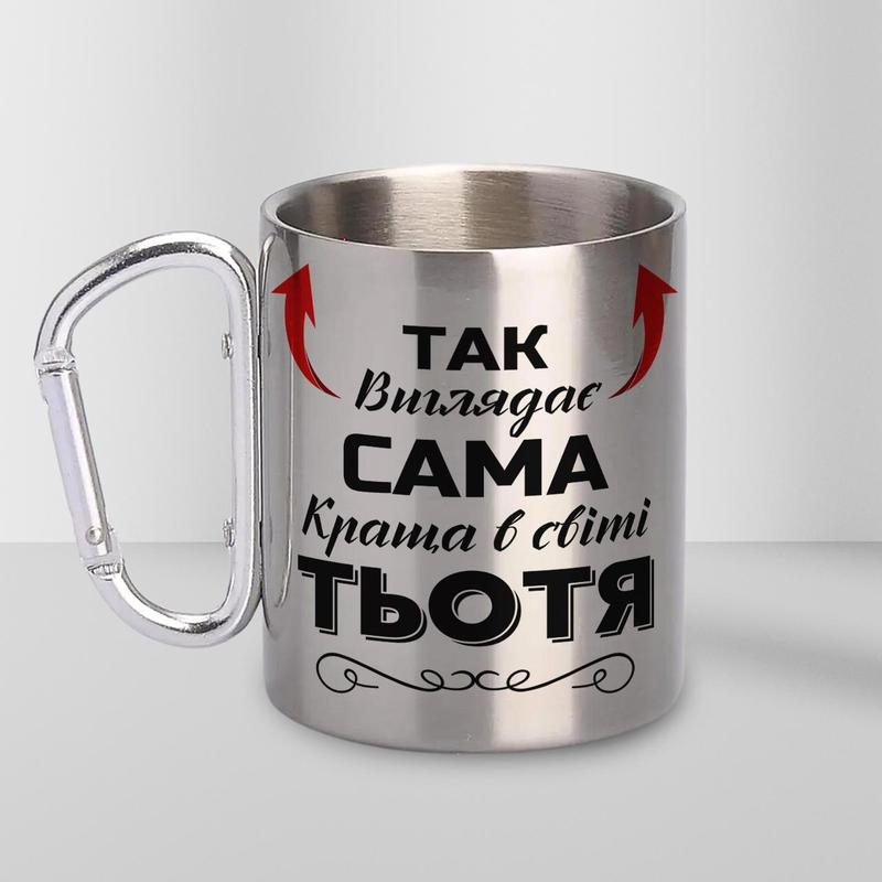 Кружка металева з карабіном "так виглядає сама краща тьотя" 300 мл срібляста|швидка достав...