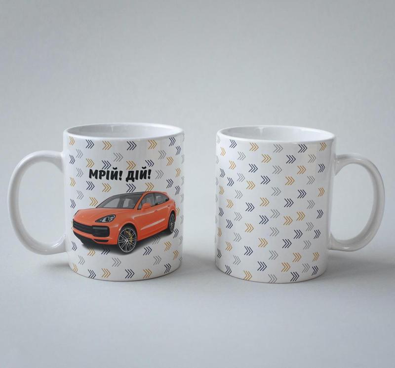 Кружка керамічна з принтом "мрій! дій! порш" 330 мл біла|швидка доставка|