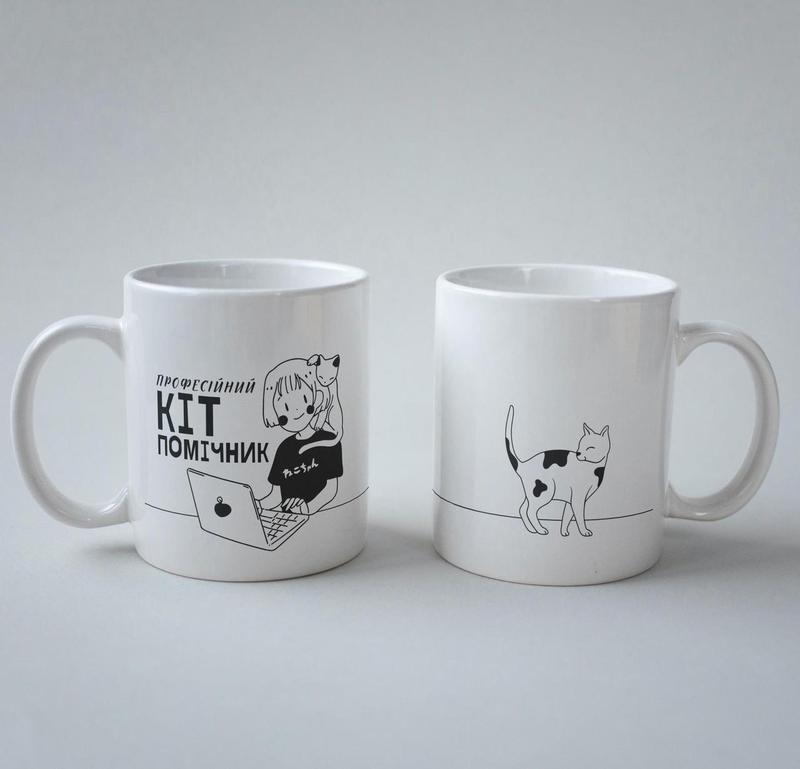 Кружка з принтом "професійний кіт помічник" 330 мл біла|швидка доставка|