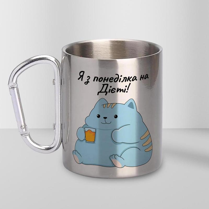 Кружка металева з карабіном "з понеділка на дієті" 300 мл срібляста|швидка доставка|