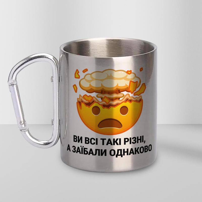 Кружка металева з карабіном "ви всі такі різні а заїбали однаково" 300 мл срібляста|швидк...