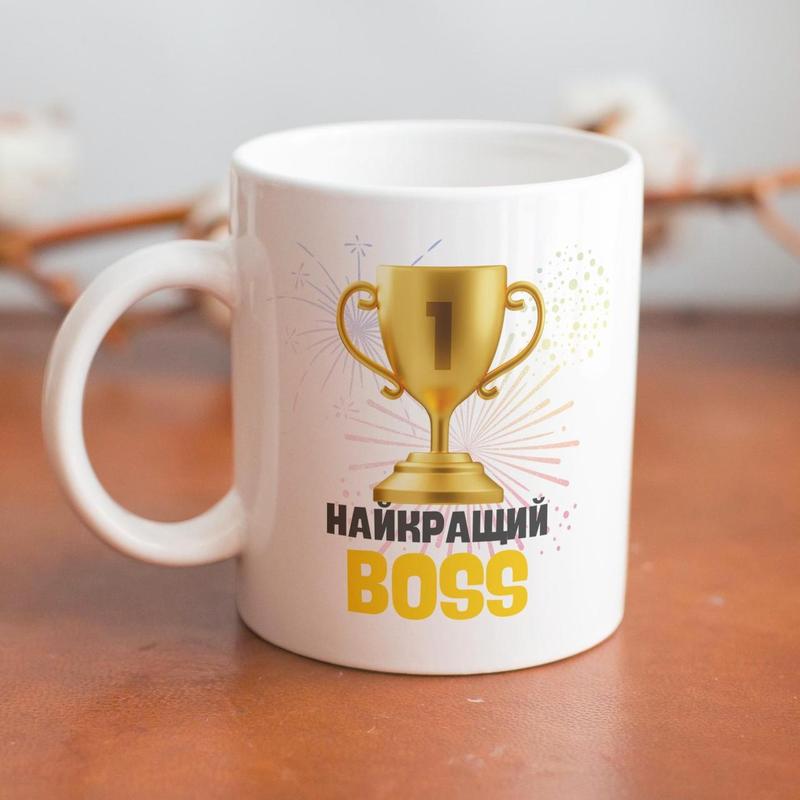 Кружка з принтом "найкращий boss" 330 мл біла|швидка доставка|